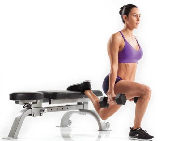 벤치나 의자에 한쪽 다리를 올리고, 다른 다리로 스쿼트 동작을 합니다. 무릎이 발끝을 넘지 않도록 주의하면서 천천히 앉았다 일어섭니다. 이때 상체는 곧게 유지하며 중심을 잃지 않아야 합니다.