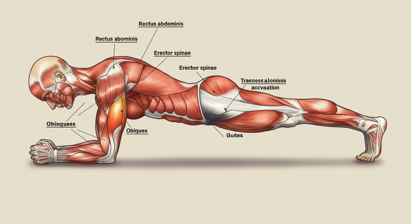 플랭크는 팔꿈치와 발끝으로 몸을 지탱하며 몸통을 곧게 유지하는 운동으로, 복직근, 복횡근, 복사근, 척추기립근, 어깨 안정근 등 코어를 중심으로 한 여러 근육이 동시에 작동한다. 처음 플랭크를 시도하면 30초도 버티기 힘든 경우가 많지만, 반복하다 보면 1분 이상 쉽게 버틸 수 있게 된다.