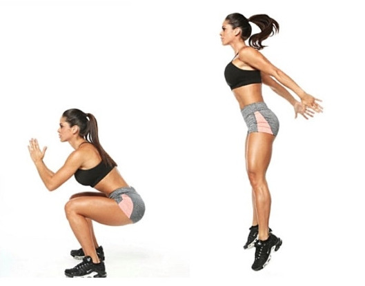 자세는 기본 스쿼트로 앉은 후, 일어설 때 점프를 하며 몸을 위로 밀어 올립니다. 착지할 때는 무릎이 충격을 흡수할 수 있도록 부드럽게 내려오고, 곧바로 다시 스쿼트 자세를 이어갑니다.