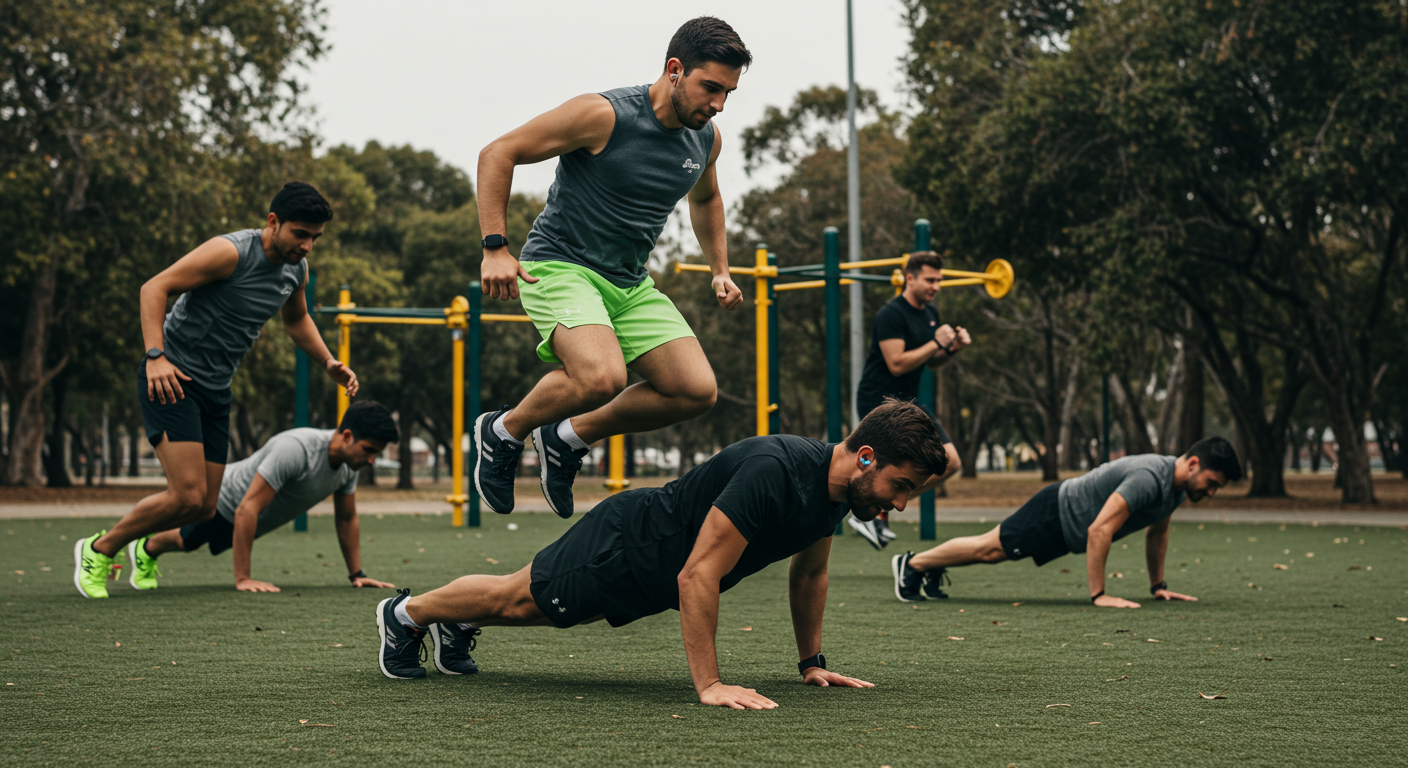 짧고 강한 전신 운동을 조합한 방식으로, 20분 만에 걷기 몇 배의 효과를 줍니다.