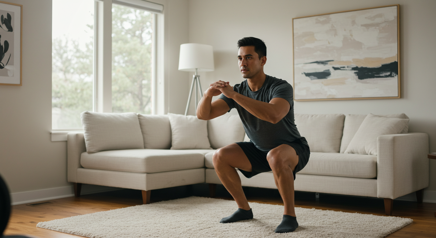 맨몸 근력 인터벌 (스쿼트 30초 → 휴식 30초 → 푸시업 30초 → 휴식 30초 → 플랭크 30초) × 2세트